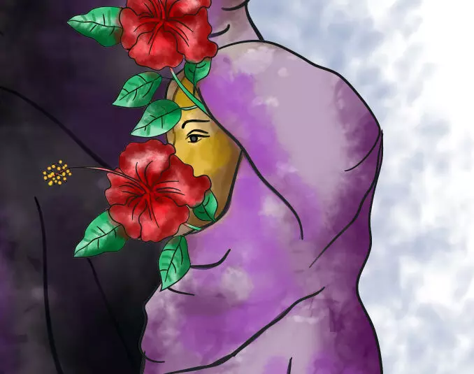 കുറച്ചുനാൾ മുമ്പ്, കൊമ്പിലൂടെ പാമ്പ് മുറിക്കകത്ത് കയറുമെന്ന് ഭയന്ന താരീഖ് വെട്ടിയൊതുക്കാൻ തുനിഞ്ഞ ചെടിയാണ്! പൂവിടാറായ ചെടി വെട്ടാൻ അവളനുവദിച്ചില്ല. ചെമ്പരത്തിയെ നോക്കിയപ്പോൾ അവളുടെ കണ്ണുനിറഞ്ഞു. വിരിഞ്ഞുവരുന്നതേയുള്ളൂ. പുലർവെയിൽ, ഇതളിനറ്റത്ത് തുളുമ്പുന്ന മഞ്ഞുതുള്ളിയിൽ മുത്തി ഏഴു വർണങ്ങൾ വിരിയിച്ചിരിക്കുന്നു.