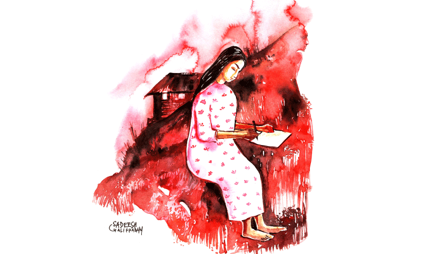 കെട്ടഴിഞ്ഞ മുടി വാരിക്കെട്ടുമ്പോള് ഭൂമികലയുടെ കൈകള് വിറക്കുന്നുണ്ടായിരുന്നു. പക്ഷേ, എഴുത്തുമേശയെ അലങ്കോലമാക്കിയ പേപ്പര്കെട്ടുകളെടുത്ത് കട്ടില്ച്ചോട്ടിലെ ഇരുട്ടിലേക്ക് തള്ളുമ്പോഴും റൈറ്റിങ് പാഡിലേക്കു പുതിയ പേപ്പറുകള് നിറക്കുമ്പോഴും ഭൂമികലയുടെ കൈകള് അശേഷം വിറച്ചിരുന്നില്ല.