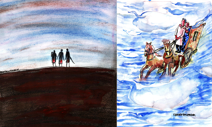 ചിത്രപ്പണികളുള്ള കൈവരിയിലേക്കു നെറ്റിമുട്ടിച്ചു സ്വപ്നം കാണുകയായിരുന്ന കാവേരി. പറക്കും കുതിരകളെ പൂട്ടിയ സ്വർണരഥത്തിലേറി ആകാശപ്പാതകളിലൂടെ പായുകയാണ് താനും പ്രിയതമനും.