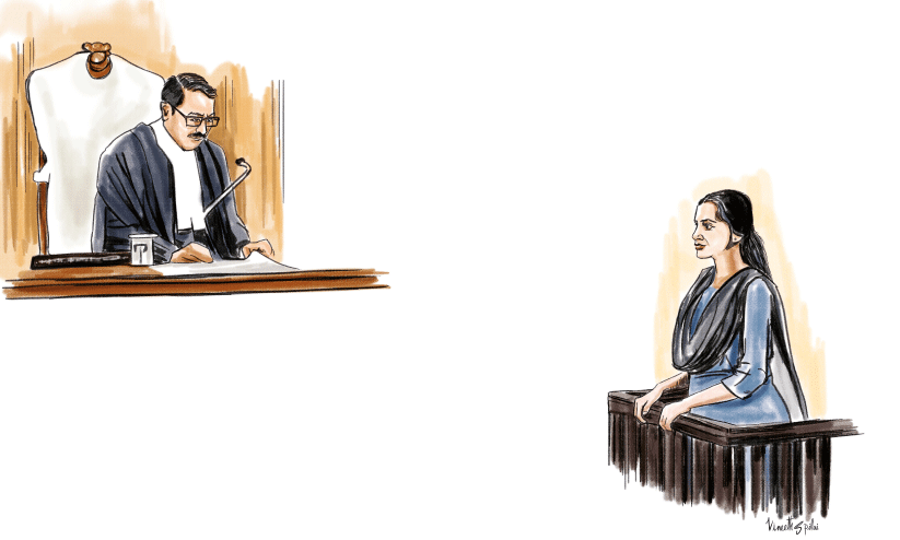 വാരികയില് അച്ചടിച്ചുവന്ന കഥ ആദ്യ ഹിയറങ്ങിൽത്തന്നെ ന്യായപീഠത്തിനു മുന്നിൽ സമർപ്പിക്കപ്പെട്ടു. വിചാരണദിവസം പ്രതിക്കൂട്ടിൽ കയറിനിന്ന കഥാകാരി ഇളംവയലറ്റ് സാരിയിൽ മനോഹരിയായിരുന്നു. ആ കൊച്ചിന് ഇമ്മാതിരി പൊട്ടക്കഥയെഴുതാതെ വല്ല മോഡലിങ്ങിനും പോയിക്കൂടേയെന്ന് വട്ടക്കണ്ണാടി വച്ച വാദിഭാഗം വക്കീല് മഞ്ഞച്ച ചിരിയോടെ വാത്സല്യപ്പെട്ടത് അവൾ കേൾക്കാൻ മാത്രം ഒച്ചയിലായിരുന്നു. പരാതിക്കാരന് അന്നേരം രസംപിടിച്ച് കുടവയർ കുലുക്കി ചിരിക്കുന്നതും കണ്ടു. ഇതിനെല്ലാം സാക്ഷിയായി കോടതിമുറിയിൽ സന്നിഹിതനായിരുന്ന ഞാൻ കണ്ടതും കേട്ടതും ഇവിടെ രേഖപ്പെടുത്തുന്നുവെന്നുമാത്രം. നഗരത്തില് X എന്ന കഥാകാരി പങ്കെടുക്കുന്ന പരിപാടികളില് മുടങ്ങാതെ മുഖംകാണിക്കുന്ന ഞാൻ ഇവിടെയെത്തിയത് യാദൃച്ഛികമായാണ്.