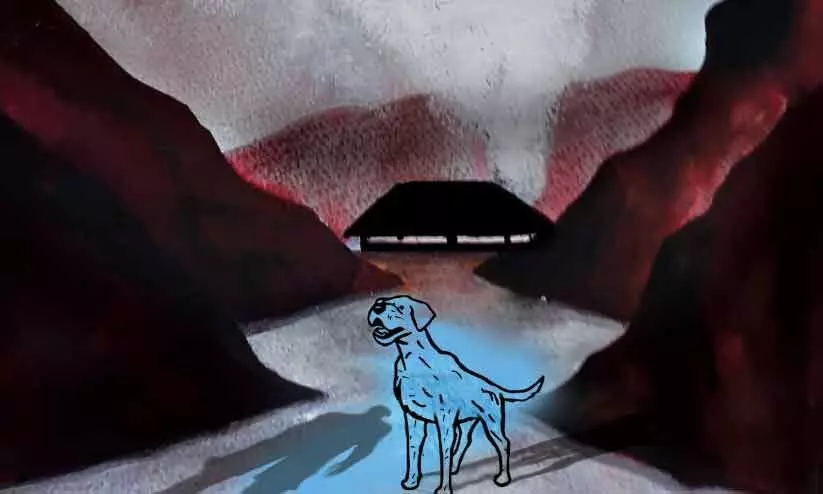 യജമാനവേഷത്തിൽ തുടരുന്ന എന്നെ ചുറ്റിനും കൂടിയിരിക്കുന്നതെല്ലാം ചേർന്ന് വെറുമൊരു വനാന്തരത്തിലെ കുട്ടിയാക്കി മാറ്റി. ഗോപുവിന്റെ സ്ഥിതി പക്ഷേ, മറിച്ചായിരുന്നു. അതിർത്തി മറികടന്നതോടെ, പതുങ്ങിക്കിടന്ന ധൈര്യം അവനിൽനിന്ന് പരിപൂർണമായി പുറത്തുചാടുകയാണുണ്ടായത്. ഇരുട്ടുവീണതോടെ ശരീരമൊന്ന് കുടഞ്ഞ്, മൂക്കു ചീറ്റി, ഗോപു ശരിക്കും ഉഷാറായി. ആ ഒഴിഞ്ഞ കെട്ടിടം കണ്ടെത്തിയത് അവനാണ്. മലഞ്ചെരിവിൽ, മരക്കൂടിനിടയിൽ അതങ്ങനെ പതുങ്ങിനിൽക്കുകയായിരുന്നു. എങ്ങനെയാണ് അവനത് കണ്ടെത്താനായത്! ദൂരെനിന്ന് മണം കിട്ടിയിരിക്കാം. അപൂർവം ചിലപ്പോഴാണെങ്കിൽപോലും, ഇങ്ങനെ ചരിത്രം മണത്തുപിടിക്കാൻ നായ്ക്കൾക്കാവും.