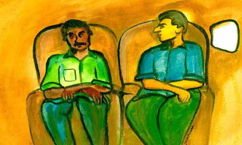 രണ്ട് പെണ്ണുകാണൽ ചടങ്ങ്, പെങ്ങളുടെ വീട്ടിലെ ഗൃഹപ്രവേശം, ഉപ്പൂപ്പായുടെ മരണം, ഗൾഫ് സാധനങ്ങളുമായി സഹപ്രവർത്തകരുടെ വീട് തേടിയുള്ള യാത്ര... ഇങ്ങനെ ഒരു ശരാശരി പ്രവാസിയുടെ രണ്ടു മാസത്തെ ലീവ് പൊടുന്നനെ ഇല്ലാതാവുന്നതിനെ കുറിച്ചായിരുന്നു സൈനുൽ അപ്പോൾ ആലോചിച്ചത്. കരിപ്പൂരിൽനിന്നും ദോഹയിലേക്കുള്ള വിമാനത്തിലാണ് സൈനുൽ. കൂടെ മുരുകനുമുണ്ട്. മുരുകന്റെ ആദ്യ വിമാനയാത്രയാണ്. ഏറ്റവും മധുരമായ ശബ്ദത്തിൽ മുന്നറിയിപ്പ് ലഭിച്ചപ്പോൾ സൈനുൽ സീറ്റ്ബെൽറ്റ് മുറുക്കി. അടുത്ത നിമിഷത്തിൽ വിമാനം പറന്നുയർന്നു.പേടിയുണ്ടോ..? സൈനുൽ ചോദിച്ചു. ചോദിച്ചു കഴിഞ്ഞപ്പോഴാണ് എത്ര നിരർഥകമാണ് ആ ചോദ്യമെന്ന്...