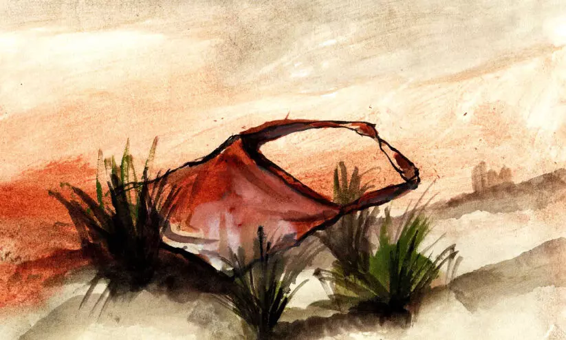 ആകുലനായി, ഈയൊരു ചോദ്യത്തിന്റെ ഉത്തരം തേടി കഴിഞ്ഞ നാല് വർഷങ്ങളായി നടന്നു തീർത്ത മരുദൂരങ്ങളുടെ ഉഷ്ണം, ഇപ്പോൾ വിയർപ്പായി പൊടിഞ്ഞ് ഒരു മഴയിലെന്നപോലെ അയാൾ നനഞ്ഞു കുതിർന്നു. കൈ വേദനിക്കുന്നയിടത്ത് വീക്കം വന്നിരിക്കുന്നു. എല്ലിന് പൊട്ടലുണ്ടോ, ആവോ? വേദന, കടന്നൽക്കുത്തുപോലെ അസഹ്യമായി...