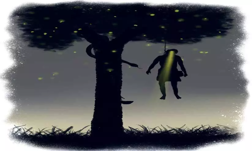 വീടിന്റെ പിന്നില്നിന്നും വിറകുകെട്ടാനെടുക്കുന്ന കയറെടുത്ത് തോട്ടത്തിലെ കല്ലുകയ്യാലകള് കയറിയുമിറങ്ങിയും ഏഴാം കല്ലിലേക്ക് ഓടി. ഇരുട്ട് തന്നെ നിത്യനരകത്തില്നിന്നും വിമോചിപ്പിക്കാന് കാത്തുനില്ക്കുന്നതുപോലെ തോന്നി.
