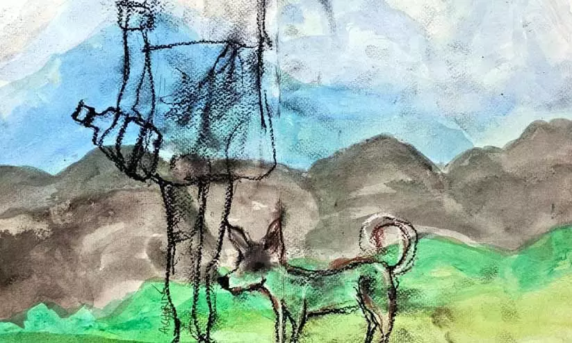 പാടം കഴിഞ്ഞ് വീട്ടുപറമ്പിലേക്കുള്ള കുത്തുകല്ലു കയറുമ്പോൾ ഓടിവന്ന് മുന്നിൽ വാലാട്ടി നിന്ന പാണ്ടൻ നായയെ കണ്ട് അയ്യപ്പൻകുട്ടി നിന്നു. പാടത്തിനരികിലെ നടവരമ്പ് മൂടിക്കിടന്ന കൈതക്കാട്ടിലേക്ക് അയാൾ ഉന്നംപിടിച്ചെറിഞ്ഞ പട്ടാള റമ്മിന്റെ കുപ്പി ജസ് പ്രീത് ബുംറയുടെ കാൽപാദം തകർക്കുന്ന യോർക്കറിന്റെ കൃത്യതയോടെ കരിങ്കല്ലിൽ പതിച്ച് ചില്ലു പൊട്ടുന്ന ശബ്ദത്തിൽ ചിതറിവീണു. ഒപ്പം വലിച്ചെറിഞ്ഞ കോഴിയിറച്ചിയുടെ മണം പിടിച്ച നായ അങ്ങോട്ടോടി.