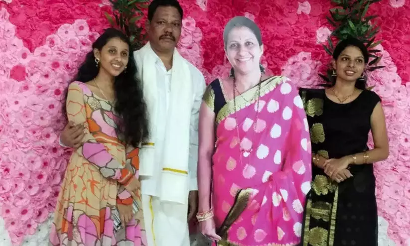 ബഡകെരെ ലക്ഷ്മിജനാർദന ഓഡിറ്റോറിയത്തിൽ നൂറുകണക്കിന് അതിഥികൾ പങ്കെടുത്ത ആഘോഷത്തിന്റെ ഫോട്ടോ സെഷനിൽ ചന്ദ്രശേഖർ ഭാര്യ സുമയുടെ മെഴുക് രൂപത്തെ ചേർത്തുനിർത്തി. രണ്ട് പെൺമക്കൾ ‘അമ്മ’ക്കരിൽ നിന്നു.