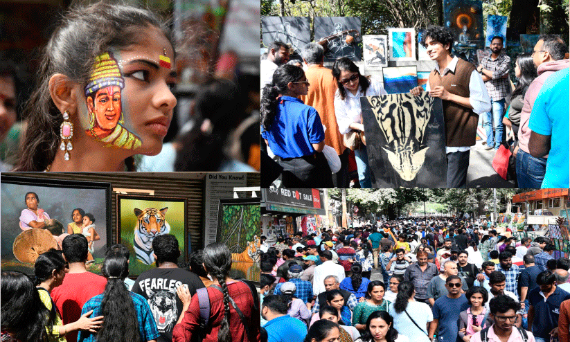 text_fieldsബംഗളൂരു: ഇരുവശത്തും പെയിന്റിങ്ങുകളും ശിൽപങ്ങളും ഇടംപിടിച്ച് വർണവീഥിയായി മാറിയ കുമാരകൃപ റോഡ്. ചിത്രങ്ങൾ വിൽക്കാനെത്തിയ നൂറുകണക്കിന് കലാകാരന്മാർ, കലാസ്വാദനത്തിനും ചിത്രങ്ങൾ വാങ്ങാനുമെത്തിയ ലക്ഷക്കണക്കിന് പേർ...ബംഗളൂരുവിലെ ചിത്രകലാ പരിഷത്തിലേക്കുള്ള വഴികൾ ഞായറാഴ്ച നടന്ന ചിത്രസന്തെയിൽ ചിത്രപാതയായ് മാറുകയായിരുന്നു. കർണാടക ചിത്രകലാ പരിഷത്ത് സംഘടിപ്പിച്ച 21ാമത് ചിത്രസന്തെ മുഖ്യമന്ത്രി സിദ്ധരാമയ്യ ഉദ്ഘാടനം ചെയ്തു.