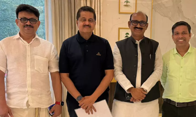ബംഗളൂരു: യു.എ.ഇയിലെ അജ്മാനിൽ തുമ്പെ ഗ്രൂപ്പ് ചെയർമാൻ ഡോ. തുമ്പെ മൊയ്ദീനെ സന്ദർശിച്ച് കർണാടക സർക്കാർ മിനിമം വേജ് അഡ്വൈസറി ബോർഡ് ചെയർമാൻ ടി.എം. ഷാഹിദ് തെക്കിൽ ചർച്ച നടത്തി. കർണാടകയിൽ നിന്നുള്ള പ്രത്യേകിച്ച് ദക്ഷിണ കന്നഡ ജില്ലയിലെ ആയിരക്കണക്കിന് ആളുകൾക്ക് തൊഴിലവസരങ്ങൾ നല്കിയ ഡോ. തുമ്പെ മൊയ്ദീനെ അദ്ദേഹം അഭിനന്ദിച്ചു.