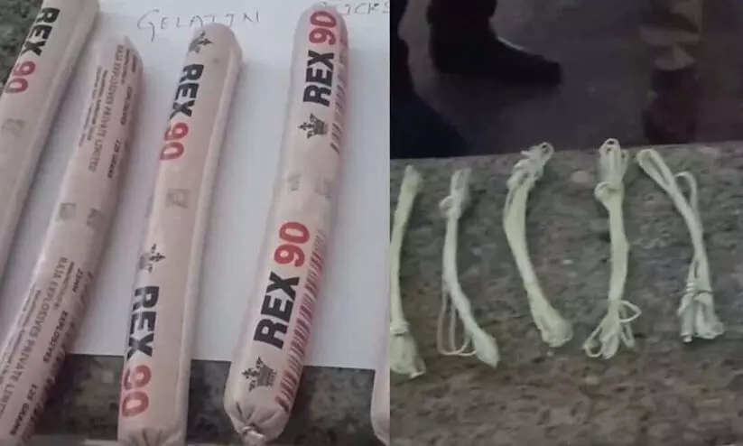 ശുചിമുറിക്ക് സമീപം കവറിൽ സൂക്ഷിച്ച നിലയിൽ ആറ് ജലാറ്റിൻ സ്റ്റിക്കുകളും ഡിറ്റണേറ്ററുകളുമാണ് പൊലീസ് കണ്ടെത്തിയത്. ഇതിൽ ജലാറ്റിൻ സ്റ്റിക്കുകളും ഡിറ്റണേറ്ററുകളും വെവ്വേറെയാണ് സൂക്ഷിച്ചിരുന്നത്. കേസിൽ അന്വേഷണം ആരംഭിച്ച പൊലീസ്, സമീപത്തെ സി.സി.ടി.വികളടക്കം വിശദമായി പരിശോധിക്കുന്നുണ്ട്.
