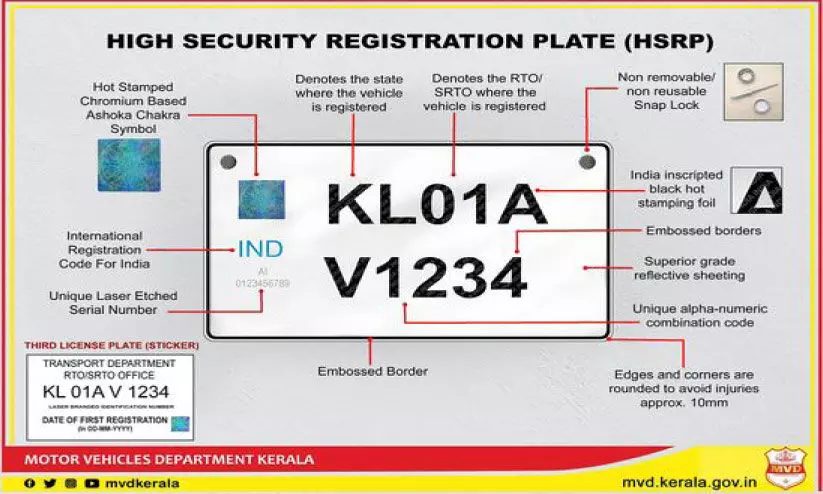 എച്ച്.എസ്.ആർ.പി നമ്പർ പ്ലേറ്റ്: 15 മുതൽ പിഴയീടാക്കും