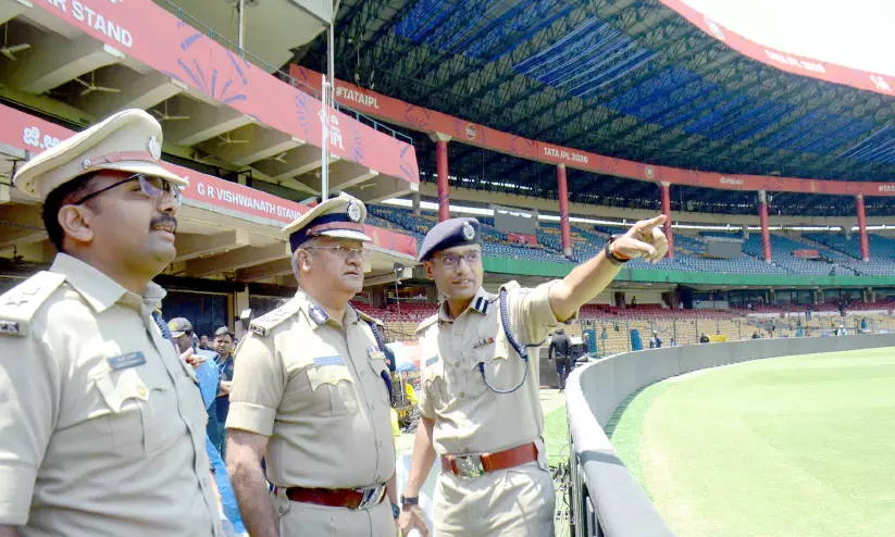 text_fieldsചിന്നസ്വാമി സ്റ്റേഡിയത്തിലെ ഐ.പി.എൽ 2026 മത്സരങ്ങളുടെ ഉദ്ഘാടനത്തിനുള്ള ഒരുക്കങ്ങൾ പരിശോധിക്കുന്ന പൊലീസ് കമീഷണർ സീമന്ത് കുമാർ സിങ് മുതിർന്ന പൊലീസ് ഉദ്യോഗസ്ഥരോടൊപ്പം
