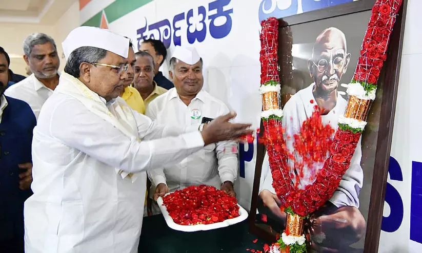 text_fieldsമഹാത്മാഗാന്ധിയുടെ രക്തസാക്ഷിത്വ ദിനത്തിൽ ബംഗളൂരുവിലെ കെ.പി.സി.സി ഓഫിസിൽ നടന്ന സ്മൃതിചടങ്ങിൽ ഗാന്ധിയുടെ ചിത്രത്തിൽ മുഖ്യമന്ത്രി സിദ്ധരാമയ്യ പൂക്കൾ അർപ്പിക്കുന്നു