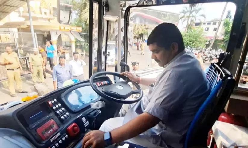 text_fieldsവേദവ്യാസ് കാമത്ത് എം.എൽ.എ ബസ് ഓടിച്ച് സർവിസ് ഉദ്ഘാടനം ചെയ്യുന്നു