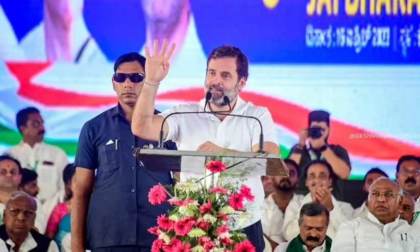 സാധാരണ പ്രതിപക്ഷമാണ് പർലമെന്റ് തടസ്സപ്പെടുത്താറുള്ളത്. എന്നാൽ, ആദ്യമായി ഭരണകക്ഷിയായ ബി.ജെ.പി പാർലമെന്റ് തടസ്സപ്പെടുത്തി. അദാനി വിഷയം ചർച്ച ചെയ്യുന്നത് മോദി ഭയക്കുന്നു. അതിനുശേഷമാണ് എന്നെ അയോഗ്യനാക്കിയത് -രാഹുൽ ചൂണ്ടിക്കാട്ടി. ‘‘ആയിരക്കണക്കിന് കോടി രൂപയാണ് അദാനിക്ക് മോദി നൽകുന്നത്. കർണാടകയിലെ പാവപ്പെട്ടവർക്കും വനിതകൾക്കും യുവാക്കൾക്കുമാണ് ഞങ്ങൾ പണം നൽകുക. മോദി പൂർണമനസ്സോടെ അദാനിയെ സഹായിക്കും. ഞങ്ങൾ പൂർണ മനസ്സോടെ ജനങ്ങളെ സഹായിക്കും. ജനങ്ങൾക്കുവേണ്ടി ചെയ്യുന്ന പ്രവൃത്തികളിൽനിന്ന് ബി.ജെ.പി സർക്കാർ 40 ശതമാനം കമീഷൻ കൈപ്പറ്റുകയാണ്. ഇതേക്കുറിച്ച് പ്രധാനമന്ത്രിക്ക് കത്തെഴുതിയിട്ടും മറുപടിയില്ല. 40 ശതമാനം കമീഷൻ എന്നത് മോദി അംഗീകരിച്ചുവെന്നാണ് അതിനർഥം’’ -രാഹുൽ പറഞ്ഞു. യു.പി.എ സർക്കാർ നടത്തിയ ജാതി സെൻസസിലെ വിവരങ്ങൾ പുറത്തുവിടാൻ മോദിയെ രാഹുൽ വെല്ലുവിളിച്ചു. രാജ്യത്തെ പിന്നാക്കക്കാരുടെ എണ്ണം എത്രയാണെന്ന് സർക്കാറിനറിയാമോ എന്ന് ചോദിച്ച രാഹുൽ, കേന്ദ്രസർക്കാറിൽ സെക്രട്ടറി തസ്തികകളിൽ അടക്കം ഒ.ബി.സി പ്രാതിനിധ്യം ഏഴുശതമാനം മാത്രമാണെന്ന് ചൂണ്ടിക്കാട്ടി.