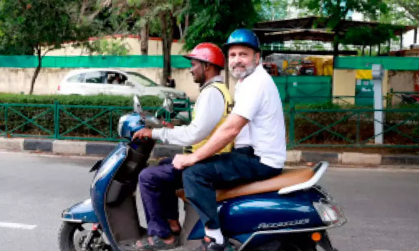 text_fieldsബംഗളൂരു: ഡെലിവറി ബോയിയുടെ സ്കൂട്ടറിൽ യാത്രചെയ്ത് കർണാടകയിലെ ദിവസവേതനക്കാരുടെ ദുരിതങ്ങൾ ചർച്ചയാക്കി കോൺഗ്രസ് നേതാവ് രാഹുൽ ഗാന്ധി. ഡെലിവറി ബോയിയുടെ പിൻസീറ്റിൽ ഇരുന്ന് രാഹുൽ രണ്ടു കിലോമീറ്റർ യാത്ര നടത്തി. ഭക്ഷണ വിതരണ കമ്പനികളിലെ ദിവസവേതന ജീവനക്കാരുമായും സംസാരിച്ചു. ഇതിന്റെയടക്കം വിഡിയോ ദൃശ്യങ്ങൾ സമൂഹമാധ്യമങ്ങളിൽ വൈറലായി.