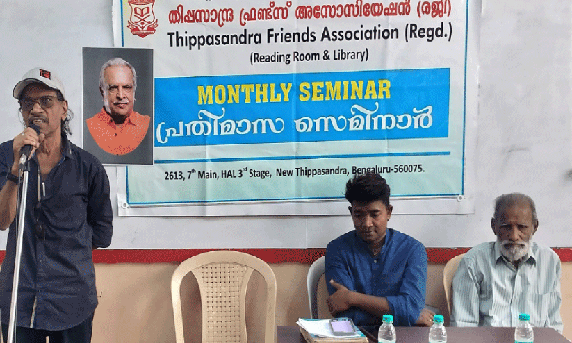 text_fieldsതിപ്പസാന്ദ്ര ഫ്രണ്ട്സ് അസോസിയേഷൻ സംഘടിപ്പിച്ച പി. ജയചന്ദ്രൻ അനുസ്മരണ പരിപാടിയിൽ ഗായകൻ എം.ബി. മോഹൻദാസ് സംസാരിക്കുന്നു