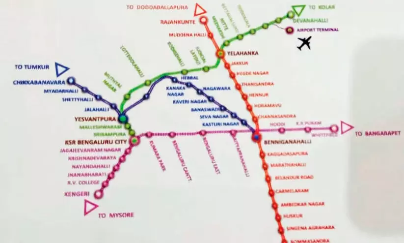 അതിനുശേഷം കരാർ നൽകി പണി പൂർത്തിയാക്കാൻ 24 മാസം കഴിയണം. കനക ലൈനിലെ പണികൾ പുനരാരംഭിക്കുന്ന കാര്യത്തിൽ തീരുമാനമായിട്ടുമില്ല. മല്ലിഗെ ലൈനിൽ 14 സ്റ്റേഷനുകളുണ്ട്. ഇതിൽ ആറെണ്ണം ആകാശപാതയാണ്. ചിക്കബാനവാര, മയദാരഹള്ളി, ഷെട്ടിഹള്ളി, ജാലഹള്ളി, യശ്വന്തപുര, ലൊട്ടഗോലഹള്ളി, ഹെബ്ബാൾ, കനകനഗർ, നാഗവാര, കാവേരിനഗർ, ബാനസവാടി, സേവാനഗർ, കസ്തൂരി നഗർ, ബയ്യപ്പനഹള്ളി എന്നിവയാണ് സ്റ്റേഷനുകൾ. 25.01 കിലോ മീറ്ററാണ് ദൈർഘ്യം.