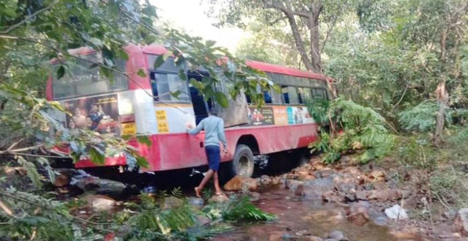 കഴിഞ്ഞദിവസം ദീപാവലി ആഘോഷം കഴിഞ്ഞ് മടങ്ങിയവരാണ് അപകടത്തിൽപെട്ടത്. ചാമരാജ് നഗർ ഹാനൂർ തലബെട്ടയിലാണ് അപകടം. ആർക്കും ജീവാപായമില്ല. മഹാദേശ്വര ഹിൽസിൽന്നിന്ന് ബസ് ചുരമിറങ്ങവെ ഡ്രൈവർക്ക് ബസിന്റെ നിയന്ത്രണം നഷ്ടപ്പെടുകയായിരുന്നു.