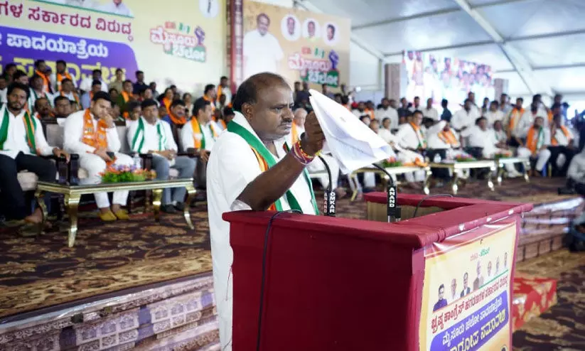 ‘മൈസൂരു ചലോ’ പദയാത്രയുടെ സമാപന ചടങ്ങിൽ കേന്ദ്രമന്ത്രി എച്ച്.ഡി. കുമാരസ്വാമി സംസാരിക്കുന്നു