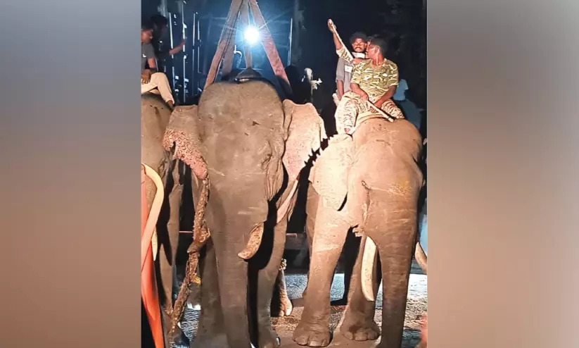 text_fieldsകാട്ടാന താപ്പാനകൾക്കൊപ്പം ബന്ദിപ്പൂരിലേക്ക് കൊണ്ടുപോവുന്നു