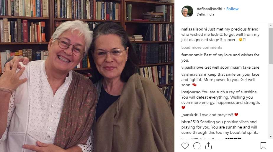 ന്യൂഡൽഹി: മുതിർന്ന ചലച്ചിത്രനടി നഫീസ അലി അർബുദബാധയുടെ മൂന്നാംഘട്ടത്തിലെന്ന് വെളിപ്പെടുത്തൽ. ഇൻസ്റ്റഗ്രാം വഴി അവർ പങ്കുവെച്ച ചിത്രങ്ങളിൽനിന്നാണ് രോഗവിവരം പുറംലോകമറിഞ്ഞത്. കോൺഗ്രസ് നേതാവ് സോണിയ ഗാന്ധി തന്നെ സന്ദർശിച്ചപ്പോഴുള്ള ചിത്രങ്ങളാണ് ഇൻസ്റ്റഗ്രാമിൽ േപാസ്റ്റ് ചെയ്തത്. രോഗത്തിൽനിന്ന് മുക്തിനേടേട്ടയെന്ന് തെൻറ ഉറ്റസുഹൃത്ത് ആശംസിച്ചതായും 61കാരിയായ നഫീസ പറഞ്ഞു.