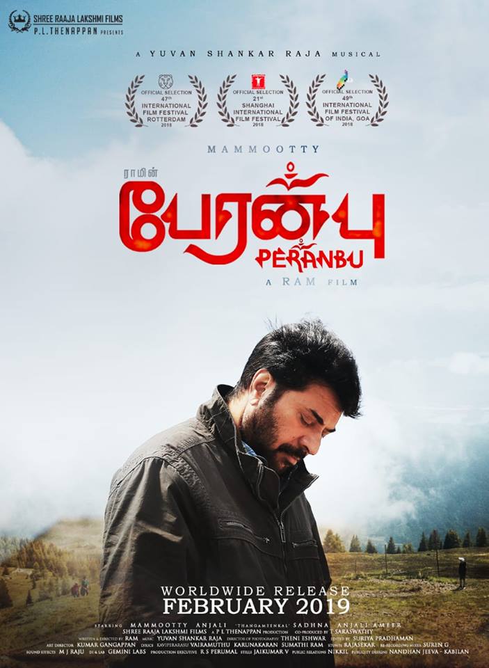 റാം സംവിധാനം ചെയ്ത പേരൻപ് പി.എൽ തേനപ്പനാണ് നിർമിച്ചിരിക്കുന്നത്. അഞ്ജലിയാണ് നായികയായി എത്തുന്നത്. തങ്കമീൻകൾ എന്ന റാം ചിത്രത്തിലൂടെ ദേശീയ പുരസ്കാരം നേടിയ സാധന സർഗം, ട്രാൻസ്ജെൻഡറായ അഞ്ജലി അമീർ എന്നിവർ ചിത്രത്തിൽ പ്രധാന േവഷം കൈകാര്യം ചെയ്യുന്നുണ്ട്.