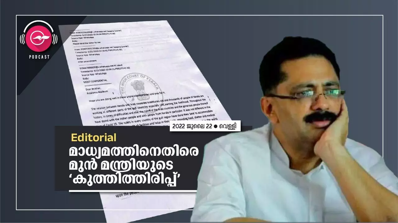 മാധ്യമത്തിനെതിരെ മുൻ മന്ത്രിയുടെ 'കുത്തിത്തിരിപ്പ്'