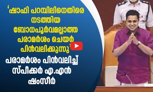 'ഷാഫി പറമ്പിലിനെതിരെ നടത്തിയ ബോധപൂർവമല്ലാത്ത പരാമർശം ചെയർ പിൻവലിക്കുന്നു'