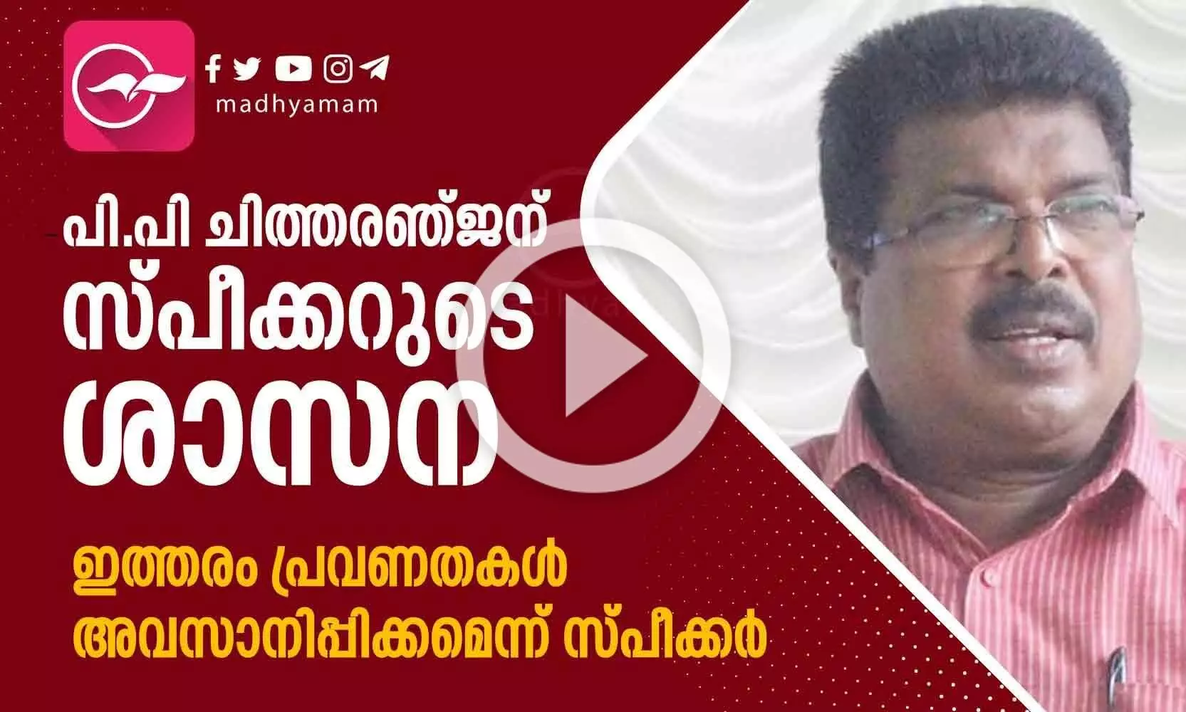 പി.പി ചിത്തരഞ്ജന് സ്പീക്കറുടെ ശാസന