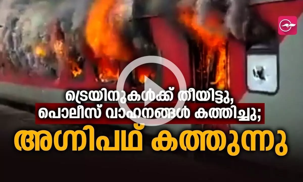 ട്രെയിനുകൾക്ക് തീയിട്ടു, പൊലീസ് വാഹനങ്ങൾ കത്തിച്ചു; അഗ്നിപഥ് കത്തുന്നു