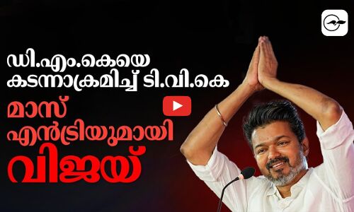 ഡിഎംകെയെ കടന്നാക്രമിച്ച് ടിവികെ; മാസ് എൻട്രിയുമായി വിജയ്