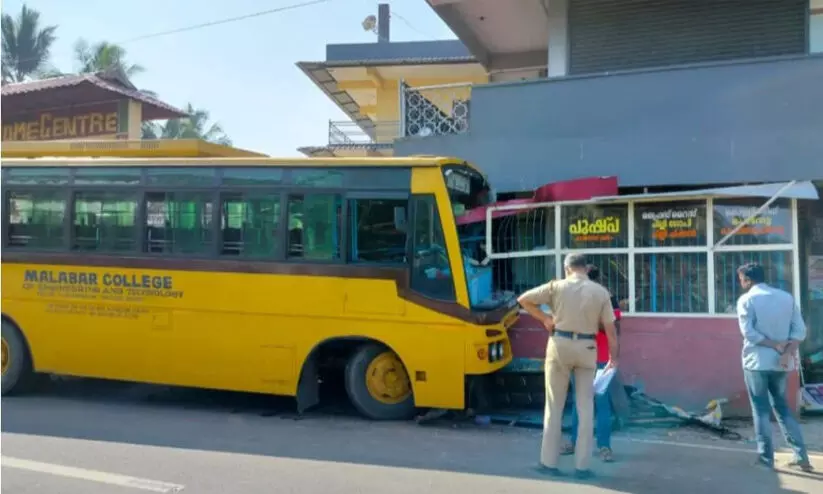 date_range 21 Dec 2022 10:53 AM ISTഡ്രൈവർക്ക് തലകറക്കം: എൻജി. കോളജ് ബസ് ഹോട്ടലിലേക്ക് ഇടിച്ചു കയറി അപകടം