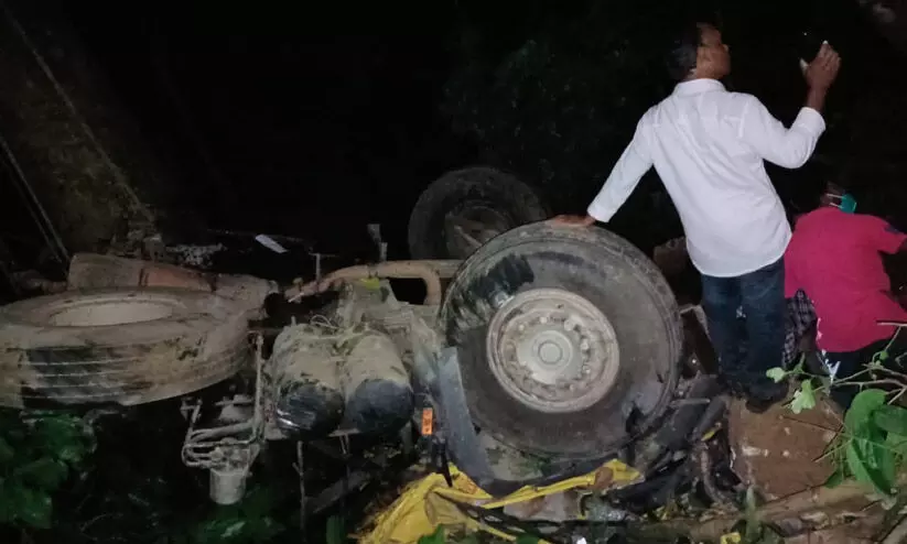 കൊക്കയിലേക്ക് ലോറി മറിഞ്ഞ് രണ്ട് പേർ മരിച്ചു; അപകടം രാത്രി