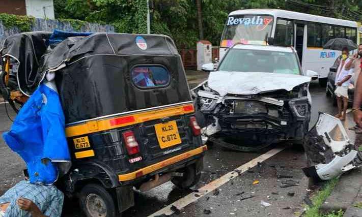 വ്യാഴാഴ്ച രാവിലെ എട്ടുമണിയോടെ ശ്രീകാര്യം കല്ലംപള്ളിക്ക് സമീപത്തെ വളവിലാണ് അപകടം. ജയചന്ദ്രനെ മെഡിക്കൽ കോളജ് ആശുപത്രിയിലേക്ക് ഡയാലിസിസിന് കൊണ്ടുപോകും വഴിയാണ് അപകടം. ഉള്ളൂർ ഭാഗത്ത് നിന്ന് അമിത വേഗത്തിൽ കാർ വരുന്നത് കണ്ട് ഓട്ടോ ബ്രേക്കിടുമ്പോൾ റോഡിൽ തെന്നിമാറി കാറുമായി കൂട്ടിയിടിക്കുകയായിരുന്നു. അപകടത്തിൽ ഓട്ടോ പൂർണമായും തകർന്നു. സ്ഥലത്തെത്തിയ ശ്രീകാര്യം പൊലീസും നാട്ടുകാരും കഴക്കൂട്ടം ഫയർഫോഴ്സും ചേർന്നാണ് പരിക്കേറ്റവരെ പുറത്തെടുത്തത്.