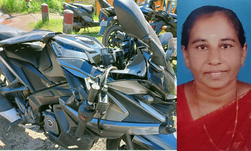 റോഡ് മുറിച്ചു കടക്കുന്നതിനിടെ ബൈക്കിടിച്ച് സ്ത്രീ മരിച്ചു; ഹെൽമറ്റ് കുരുങ്ങി ബൈക്ക് യാത്രികന് ഗുരുതരം