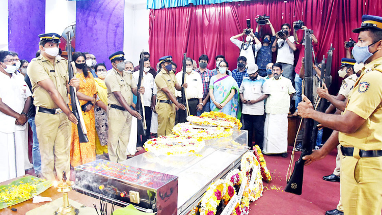 text_fieldsപി.എസ്. നിവാസിെൻറ മൃതദേഹം ടൗൺഹാളിൽ പൊതുദർശനത്തിന് െവച്ചപ്പോൾ പൊലീസ് ഗാർഡ് ഓഫ് ഓണർ നൽകുന്നു