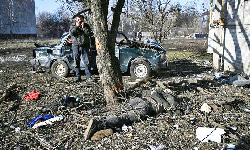 text_fieldsകിഴക്കൻ യുക്രെയ്ൻ നഗരമായ ചുഗുയുവിൽ റഷ്യൻ ബോംബാക്രമണത്തിൽ മരിച്ചയാളുടെ മൃതദേഹം കണ്ട് മുഖംപൊത്തിക്കരയുന്ന യുക്രെയ്ൻകാരൻ