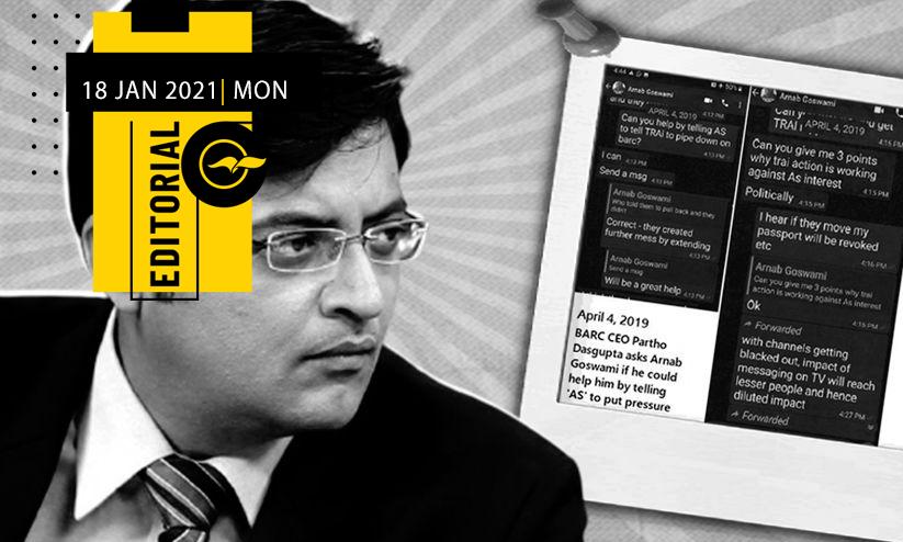 2019ലെ ലോക്സഭ തെരഞ്ഞെടുപ്പിൽ ജനാഭിപ്രായം ഭരണപക്ഷത്തിനനുകൂലമല്ല എന്ന വിലയിരുത്തലുണ്ടായ സമയത്താണ് പുൽവാമ-ബാലാകോട്ട് സംഭവങ്ങൾ നിർണായകമായ വഴിത്തിരിവായത്. പുൽവാമ ഭീകരാക്രമണത്തെപ്പറ്റി 'നമുക്ക് വൻ വിജയം' എന്ന് ഗോസ്വാമി കുറിച്ചതിെൻറ അർഥമെന്ത് എന്ന ചോദ്യമുയർന്നിട്ടുണ്ട്. ഭീകരാക്രമണത്തിന് തിരിച്ചടിയെന്ന നിലക്ക് ബാലാകോട്ട് ആക്രമണം നടത്തിയപ്പോഴാകട്ടെ, മൂന്നു നാൾ മുേമ്പ ഗോസ്വാമി കാര്യമറിഞ്ഞിരുന്നുവെന്ന് ചാറ്റ് കാണിക്കുന്നു. ജമ്മു-കശ്മീരിെൻറ പ്രത്യേക പദവി എടുത്തുകളഞ്ഞതടക്കമുള്ള മർമപ്രധാനമായ ഭരണതീരുമാനങ്ങൾ അർണബിനെപ്പോലുള്ളവർക്ക് എങ്ങനെയോ ലഭിക്കുന്നു എന്നാണല്ലോ ഇതിനർഥം. ഇതിൽ പലതും ഭരണത്തിെൻറ ഉന്നതതലങ്ങളിൽ മാത്രമറിയുന്നതും ഏതാനും വ്യക്തികളിൽ മാത്രം അതിരഹസ്യമെന്ന നിലക്ക് ഒതുങ്ങുന്നതുമായ കാര്യങ്ങളാണ്. അതൊക്കെ വളരെ ലാഘവത്തോടെ തീരുമാനിക്കപ്പെടുകയും നടപ്പാക്കപ്പെടുകയും ചെയ്യുന്നു എന്നും ഇതിലെല്ലാം നിയമത്തിെൻറ ജനാധിപത്യ മുറകളല്ല മറ്റേതോ സമാന്തര ഭരണ'മര്യാദ'കളാണ് പാലിക്കപ്പെട്ടതെന്നുമുള്ള ധാരണയാണ് വാട്സ്ആപ് ചാറ്റുകൾ നൽകുന്നത്. ഭരണഘടനയും നിയമവാഴ്ചയും താൽപര്യപ്പെടുന്നത് വാട്സ്ആപ് ചാറ്റുകളെക്കുറിച്ച് സ്വതന്ത്രവും വിശ്വസനീയവുമായ അന്വേഷണം നടത്തി സത്യം പുറത്തുകൊണ്ടുവരണമെന്നാണ്. വെറും നിഷേധമോ വ്യാഖ്യാനക്കസർത്തോകൊണ്ട് ഇല്ലാതാക്കാവുന്നതല്ല രാഷ്ട്രമനസ്സാക്ഷിയിൽ ഉയർന്നിരിക്കുന്ന അതിഗുരുതരമായ സംശയങ്ങൾ.
