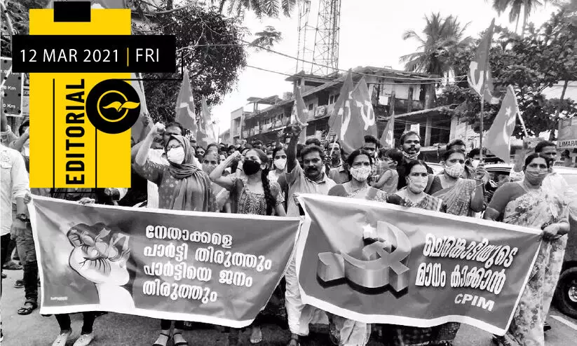 സ്ഥാനാർഥി നിർണയത്തെ ചൊല്ലിയുള്ള കലഹങ്ങളിൽ ഇത്തവണ വിചിത്രമായത് സി.പി.ഐ, സി.പി.എം പാർട്ടികളിൽ സംഭവിച്ചുകൊണ്ടിരിക്കുന്ന കാര്യങ്ങളാണ്. പാർട്ടി തീരുമാനിക്കുന്ന സ്ഥാനാർഥികളെ മറുചോദ്യങ്ങളോ അസ്വാരസ്യങ്ങളോ ഇല്ലാതെ പ്രവർത്തകർ ഏറ്റെടുക്കുകയും വിജയത്തിനായി പ്രവർത്തിക്കുകയും ചെയ്യുക എന്നതായിരുന്നു കമ്യൂണിസ്റ്റ് പാർട്ടികളിലെ സാധാരണ രീതി. മുമ്പ് വി.എസ്. അച്യുതാനന്ദന് സീറ്റ് നിഷേധിക്കപ്പെട്ട ഘട്ടത്തിൽ അതിന് വിരുദ്ധമായ കാര്യം സംഭവിച്ചിട്ടുണ്ട്. കേരളത്തിലെ സി.പി.എം പാർട്ടിഘടനക്ക് അകത്തും; പുറത്ത്, മേൽപാളി സാംസ്കാരിക സമൂഹത്തിലും ബിംബവത്കരിക്കപ്പെട്ട വ്യക്തിയായിരുന്നു അച്യുതാനന്ദൻ. അത്തരമൊരു അവസ്ഥയിലാണ് സമ്മർദം കൂടി വന്നതോടെ വി.എസിന് സീറ്റ് കൊടുക്കാൻ പറ്റില്ലെന്ന പരുവത്തിൽ സി.പി.എം നേതൃത്വം എത്തുന്നത്. സംഘടനാപരമായി നോക്കുമ്പോൾ കേന്ദ്രീകൃത ജനാധിപത്യം അടിസ്ഥാനപ്പെടുത്തിയുള്ള സി.പി.എം പോലുള്ള ഒരു കേഡർ പാർട്ടിയിൽ സംഭവിക്കാൻ പാടില്ലാത്ത കാര്യമായിരുന്നു അത്.