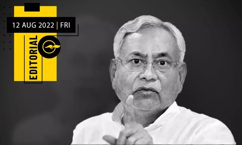 text_fieldsബിഹാറിലെ രാഷ്ട്രീയമാറ്റം ദേശീയരാഷ്ട്രീയത്തിൽ വരാൻ പോകുന്ന സ്ഫോടനാത്മക പരിവർത്തനങ്ങളുടെ തുടക്കമാണോ? അങ്ങനെ സംഭവിക്കട്ടെ എന്ന് ആഗ്രഹിക്കുന്നവരും നിതീഷിന്റെ രാഷ്ട്രീയ ജീവചരിത്രം അത്തരം പ്രതീക്ഷകളെ പ്രശോഭിതമാക്കാൻ മാത്രം ജീവസ്സുറ്റവയ എന്നു തിരിച്ചറിയുന്നുണ്ട്. രണ്ടു പതിറ്റാണ്ടായി വലിയ പ്രത്യാശകൾ സമ്മാനിച്ച് മഹാസംഖ്യങ്ങൾ തകർത്താടി വരുകയും അതിനേക്കാൾ വലിയ നിരാശകൾ നൽകി തകർന്നടിയുകയും ചെയ്യുന്ന അവസരവാദ രാഷ്ട്രീയത്തിന്റെ കൂത്തരങ്ങാണ് ബിഹാർ. നിതീഷ് കുമാറാകട്ടെ, ഇത്തരം നാടകങ്ങളിലെ പ്രധാന വേഷംകെട്ടലുകാരനുമാണ്. പുതിയ രാഷ്ട്രീയക്കളിയിലൂടെ മുഖ്യമന്ത്രിയായ അദ്ദേഹത്തെ ഉപമുഖ്യമന്ത്രി തേജസ്വി യാദവ് കളിയാക്കി വിളിച്ചിരുന്നത് 'യു ടേൺ അമ്മാവൻ' എന്നായിരുന്നു. അതേസമയംതന്നെ ജനങ്ങളുടെ മിടിപ്പ് തിരിച്ചറിയുന്നതിൽ മികവുറ്റ രാഷ്ട്രീയതന്ത്രജ്ഞനുമാണ് അദ്ദേഹം. അതുകൊണ്ടാണ് അമിത് ഷായുടെ തന്ത്രങ്ങളെ കടത്തിവെട്ടി പാർട്ടിയിൽ ഒരു പിളർപ്പുമില്ലാതെ എൻ.ഡി.എയെ ഉപേക്ഷിക്കാനും പുതിയ സഖ്യത്തിൽ മുഖ്യമന്ത്രിയായി തുടരാനും നിതീഷിന് കഴിഞ്ഞത്. ഈ രാഷ്ട്രീയ കളംമാറ്റം നിതീഷിന്റെ മുന്നിലെ ഉദ്ധവിന്റെ ഗതി സംഭവിക്കാതിരിക്കാനുമുള്ള അവസാന രക്ഷാമാർഗമായിരുന്നു. ഒരിക്കലേറ്റ രാഷ്ട്രീയ തിരിച്ചടിയുടെ മുറിവും വേദനയും പരിഗണിക്കാതെ നിതീഷുമായി കൈകോർക്കാൻ സന്നദ്ധനായ തേജസ്വി യാദവിന്റെ വിട്ടുവീഴ്ച നിലപാടാണ് മഹാസഖ്യത്തിന് വീണ്ടും സാധ്യത തെളിയിച്ചത്.