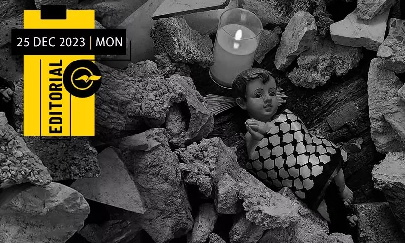 യേശു ഇന്നാണ് ജനിക്കുന്നതെങ്കിൽ അത് മർദകർ തകർത്ത രാജ്യത്തിന്റെ അവശിഷ്ടങ്ങൾക്കിടയിലായിരിക്കുമെന്ന് സഭാ നേതാക്കൾ ഊന്നിപ്പറയുന്നു. ഇസ്രായേൽ ഇതിനകം മസ്ജിദുകളും ചർച്ചകളും സ്കൂളുകളും ആശുപത്രികളും കണക്കില്ലാതെ തകർത്തിട്ടുണ്ട്. മദർ തെരേസ സ്ഥാപിച്ച പുനരധിവാസകേന്ദ്രവും തകർത്തു. ഇസ്രായേലി സൈനികന്റെ വെടിയേറ്റ് ഹോളിഫാമിലി ചർച്ച് വളപ്പിൽ രണ്ട് സ്ത്രീകൾ മരിച്ചത് കഴിഞ്ഞയാഴ്ചയാണ്. പള്ളികളെപ്പറ്റിയുള്ള വിവരങ്ങൾ സൈന്യത്തിന് കൈമാറിയശേഷമാണിത്. ഫ്രാൻസിസ് രണ്ടാമൻ മാർപാപ്പ ഒന്നിലേറെ തവണ ഇസ്രായേലിന്റേത് ‘ഭീകരത’യാണെന്ന് തുറന്നടിച്ചു. ശാന്തിയുടെ പ്രവാചകനായിരുന്നു യേശു. ക്രിസ്മസും സമാധാനത്തിന്റെ സന്ദേശമാണ് നൽകുന്നത്. മനുഷ്യർക്കിടയിൽ വംശവെറി പടർത്തി നാശമുണ്ടാക്കുന്ന മർദകരെ തള്ളിപ്പറയുമ്പോൾ നീതിയുടെ താൽപര്യമാണ് ക്രൈസ്തവസഭ ഉയർത്തിപ്പിടിക്കുന്നത്. ക്രിസ്മസിന്റെ യഥാർഥ ആത്മാവ് കണ്ടെത്തുന്നതായിരിക്കട്ടെ ഈ വേള. ശാന്തിനിറഞ്ഞ ലോകത്തിന്റെ പിറവിയെപ്പറ്റിയുള്ള പ്രതീക്ഷയാകട്ടെ ഈ തിരുപ്പിറവിനാൾ.