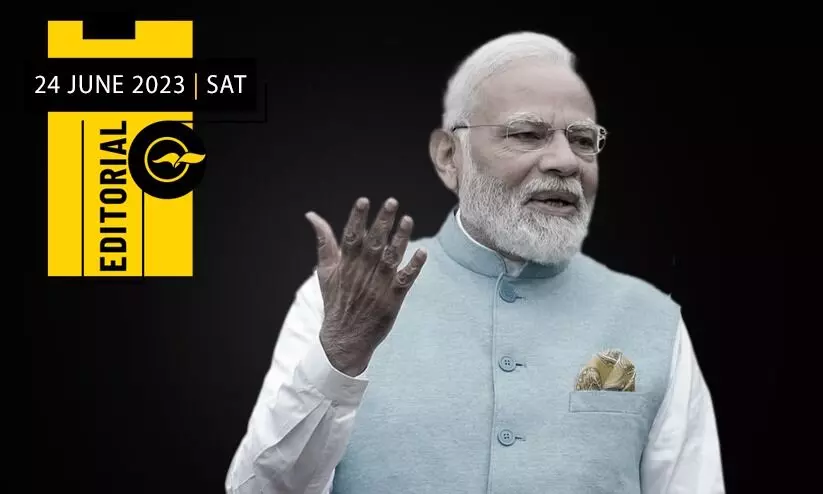 text_fieldsപതിവിൽനിന്ന് വ്യത്യസ്തമാണ് ഇത്തവണ പ്രധാനമന്ത്രി നരേന്ദ്ര മോദിയുടെ അമേരിക്കൻ യാത്ര. 2014ൽ, പ്രധാനമന്ത്രിപദത്തിലെത്തിയശേഷം ആറു തവണ അമേരിക്കയുടെ അതിഥിയായപ്പോഴൊന്നുമില്ലാത്ത സവിശേഷതകളാണ് ഇപ്പോഴത്തെ ഏഴാം യാത്രയെ ശ്രദ്ധേയമാക്കിയത്. മുൻകാലങ്ങളിൽ അമേരിക്കയിലെ അനുയായിവൃന്ദങ്ങളിൽ നിന്നുകേട്ട ആഘോഷ മുദ്രാവാക്യങ്ങൾക്കു പകരം ചിലയിടങ്ങളിൽ നിന്നെങ്കിലും പ്രതിഷേധസ്വരങ്ങൾ ഉയർന്നു. സ്വന്തം രാജ്യത്തുപോലും അഭിമുഖീകരിച്ചിട്ടില്ലാത്ത മാധ്യമചോദ്യങ്ങളെയും അവിടെ നേരിടേണ്ടിവന്നു. മൂന്നു ദിവസത്തെ സന്ദർശനത്തിനെത്തിയ മോദിയെ അമേരിക്കയിലെ പ്രമുഖ ജനാധിപത്യ-മനുഷ്യാവകാശ സംഘടനകൾ സ്വീകരിച്ചത് വിവിധ പ്രതിഷേധപരിപാടികൾ ആവിഷ്കരിച്ചായിരുന്നു. സമാനതകളില്ലാത്തവിധം ന്യൂനപക്ഷവേട്ട നടത്തുന്ന മോദിക്കും അദ്ദേഹത്തിന്റെ സർക്കാറിനുമെതിരെ ബാനറുകളും പ്രതിഷേധ മുദ്രാവാക്യങ്ങൾ പ്രദർശിപ്പിച്ച ഡിജിറ്റൽ സ്ക്രീനുകളുമായി ട്രക്കുകൾ നിരത്തിലൂടെ നീങ്ങുന്ന കാഴ്ച അന്താരാഷ്ട്ര മാധ്യമങ്ങൾ വലിയ പ്രാധാന്യത്തോടെ റിപ്പോർട്ട് ചെയ്തു. ചില ഡിജിറ്റൽ സ്ക്രീനുകളിൽ മോദിയെ ‘ക്രൈം മിനിസ്റ്റർ ഓഫ് ഇന്ത്യ’ എന്നുവരെ വിശേഷിപ്പിച്ചു. ‘മോദി നോട്ട് വെൽക്കം’ എന്ന ഹാഷ് ടാഗിൽ നടക്കുന്ന പ്രചാരണവും ട്വിറ്റർ ട്രെൻഡിങ്ങുകളിലൊന്നായിരുന്നു. എന്തിനേറെ, മോദിയുടെ ന്യൂനപക്ഷവേട്ടയിൽ മുൻപ്രസിഡന്റ് ബറാക് ഒബാമ പോലും ആശങ്ക അറിയിച്ചു. കഴിഞ്ഞദിവസം, അമേരിക്കൻ പ്രസിഡൻറ് ജോ ബൈഡനൊപ്പമുള്ള സംയുക്ത വാർത്തസമ്മേളനത്തിനുശേഷം ‘വാൾസ്ട്രീറ്റ് ജേണലി’ന്റെ റിപ്പോർട്ടർ ഈ പ്രതിഷേധങ്ങളുടെകൂടി പശ്ചാത്തലത്തിൽ മോദിക്കുനേരെ തൊടുത്തുവിട്ട ചോദ്യത്തിനുമുന്നിൽ അദ്ദേഹം ഒരുനിമിഷം പകച്ചുപോയി. ഈ പ്രതിഷേധത്തെയും പതർച്ചയെയുമെല്ലാം ജനാധിപത്യ വീണ്ടെടുപ്പിന്റെ ശുഭസൂചനകളായി വിലയിരുത്തുന്നവരുമുണ്ട്.