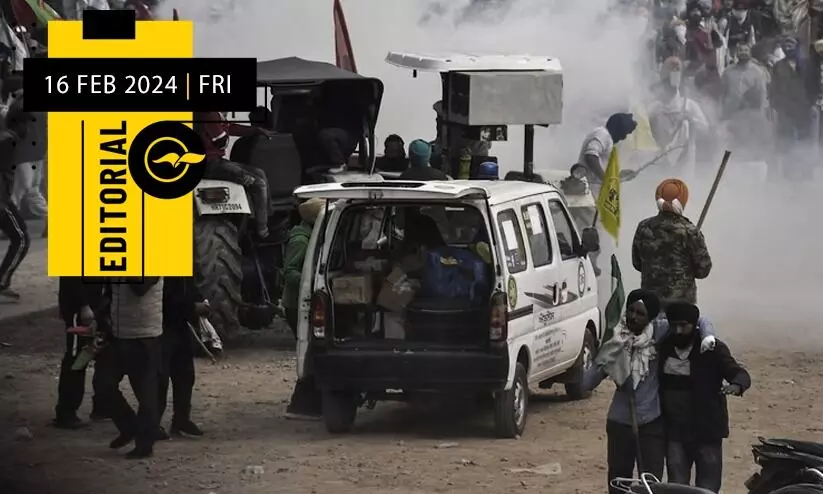 ശത്രുരാജ്യ സൈനികരോ നിയമവിരുദ്ധ സംഘടനാ പ്രവർത്തകരോ അല്ല, അരിയും ഗോതമ്പും ധാന്യങ്ങളും വിളയിച്ച് രാജ്യത്തിന് വിശപ്പടക്കാനുള്ള വകയൊരുക്കുന്ന കർഷകരാണ് ഡൽഹിയിലേക്ക് സമരവുമായി വരുന്നത്. റേഷൻകടകൾക്കുമുന്നിൽ പ്രധാനമന്ത്രിയുടെ സെൽഫി കോലങ്ങൾ സ്ഥാപിച്ചതുകൊണ്ടല്ല, മഞ്ഞും മഴയും വെയിലും ഗൗനിക്കാതെ കർഷകർ മണ്ണിലിറങ്ങി എല്ലുമുറിയെ പണിചെയ്യുന്നതുകൊണ്ടാണ് രാജ്യത്തെ ജനങ്ങൾ പട്ടിണിയില്ലാതെ കഴിയുന്നത്. സംയുക്ത കിസാൻ മോർച്ച (രാഷ്ട്രീയേതര വിഭാഗം), 250 സംഘങ്ങളുടെ കൂട്ടായ്മയായ കിസാൻ മസ്ദൂർ മോർച്ച എന്നിവരുടെ ബാനറിലെത്തുന്ന കർഷകർ എന്തെങ്കിലും അന്യായമായ ആവശ്യങ്ങൾ മുന്നോട്ടുവെക്കുന്നില്ല, സംഘ്പരിവാർ റാലികളിലേതുപോലെ കടന്നുപോകുന്ന വഴികളിൽ അതിക്രമങ്ങൾ കാട്ടിക്കൂട്ടുന്നില്ല, വെറുപ്പും വിദ്വേഷവും പരത്തുന്നില്ല. ഇതിനു മുമ്പ് നടത്തിയ ഐതിഹാസിക സമരം അവസാനിപ്പിക്കുന്നതിന് 2021ൽ കേന്ദ്ര സർക്കാർ നൽകിയ മിനിമം താങ്ങുവില ഉൾപ്പെടെയുള്ള ഉറപ്പുകൾ പാലിക്കണമെന്നാണ് അവരുടെ മുഖ്യ ആവശ്യം. വാക്കുപാലിക്കാൻ കൂട്ടാക്കാതെ വഞ്ചിച്ച സർക്കാർ ഇപ്പോൾ ആയുധബലമുപയോഗിച്ച് കർഷകരെ നേരിടാൻ ഒരുമ്പെടുന്നത് കുടിലതയാണ്, ജനദ്രോഹമാണ്.