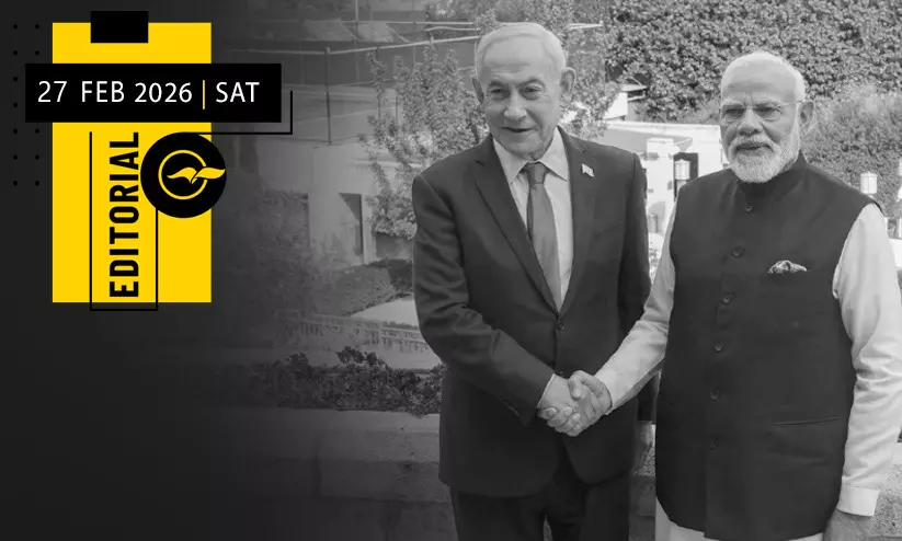 വംശഹത്യക്കുറ്റങ്ങളുടെ പേരിൽ വിദേശരാജ്യ നേതാക്കളും അഴിമതികളുടെ പേരിൽ ഇസ്രായേലി ജനതയും നെതന്യാഹുവിനോട് അകലം പാലിക്കുമ്പോൾ, അദ്ദേഹത്തിന്റെ അതിഥിയായി ഇന്ത്യൻ പ്രധാനമന്ത്രി എത്തിയതുതന്നെ കനത്ത ഔചിത്യമില്ലായ്മയാണ്. ലോകം കണ്ട ഏറ്റവും വലിയ വംശഹത്യയുടെ സംഘാടകരുമായി ആയുധ ഇടപാടുകൾ ശക്തിപ്പെടുത്താനുള്ള പ്രഖ്യാപനങ്ങൾ, അദ്ദേഹത്തിന്റെ പ്രസംഗത്തിലെ ‘ശാന്തി’, ‘സമാധാനം’ എന്നീ പദങ്ങളെ അർഥശൂന്യമാക്കുന്നു. ഇസ്രായേലിൽനിന്നുള്ള ആയുധ ഇറക്കുമതിയിൽ ലോകത്ത് ഒന്നാം സ്ഥാനത്താണ് ഇന്ത്യ. വെറും നയതന്ത്ര ബന്ധത്തിനപ്പുറം, വലിയ സാമ്പത്തിക-ആയുധ ഇടപാടുകളാണ് ഈ ബന്ധത്തിന്റെ അടിസ്ഥാനം. ‘മേക് ഇൻ ഇന്ത്യ’ പദ്ധതിയുടെ മറവിൽ ഇസ്രായേലി ആയുധ കമ്പനികളുമായി ചേർന്ന് ഇന്ത്യയിൽ ഡ്രോണുകളും മിസൈലുകളും നിർമിക്കുമ്പോൾ, അവ പിഞ്ചുകുഞ്ഞുങ്ങളുടെ ചോര നനഞ്ഞ പരീക്ഷണശാലകളിൽനിന്ന് ഉരുത്തിരിഞ്ഞതാണെന്ന സത്യം വിസ്മരിക്കാനാവില്ല.