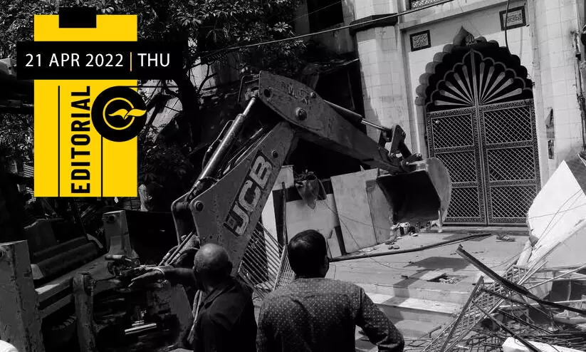ഉത്തർപ്രദേശും മധ്യപ്രദേശും കടന്ന് ബുൾഡോസർ രാജ് ഡൽഹിയിലുമെത്തിയിരിക്കുകയാണ്. ഡൽഹിയിലെ ജഹാംഗീർപുരിയിൽ അനധികൃതകെട്ടിടങ്ങൾ എന്ന് ആരോപിച്ച് നിരവധി താമസസ്ഥലങ്ങളും കച്ചവട സ്ഥാപനങ്ങളുമാണ് ബുധനാഴ്ച മുൻസിപ്പൽ കോർപറേഷൻ അധികാരികൾ ബുൾഡോസർ ഉപയോഗിച്ച് ഇടിച്ചുനിരത്തിയത്. സായുധ പൊലീസിെന്റ വൻ ബന്തവസ്സിലാണ് പൊളിക്കൽ നടപടികൾ ആരംഭിച്ചത്. വിഷയം ജംഇയ്യതുൽ ഉലമായെ ഹിന്ദ് സുപ്രീം കോടതി ചീഫ് ജസ്റ്റിസിന് മുമ്പാകെ എത്തിച്ചു. സുപ്രീംകോടതി പൊളിക്കൽ നടപടി സ്റ്റേ ചെയ്തു. കോടതി സ്റ്റേ ചെയ്തശേഷവും ഉത്തരവ് കൈയിൽ കിട്ടിയില്ല എന്നു പറഞ്ഞ് പൊളിക്കലുമായി മുന്നോട്ടുപോവുകയായിരുന്നു അധികൃതർ. അഭിഭാഷകർ സുപ്രീം കോടതിയിൽ വീണ്ടും വിഷയം ഉന്നയിച്ചതിനെ തുടർന്ന് വീണ്ടും കോടതി ഇടപെടലുണ്ടായപ്പോഴാണ് പൊളിക്കൽ നിർത്താൻ അധികൃതർ സന്നദ്ധരായത്.