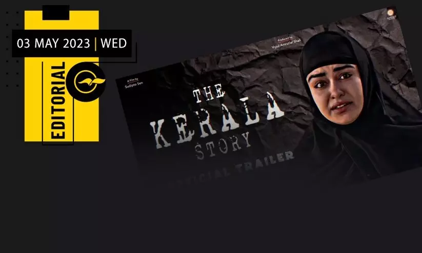 പടത്തിൽ 10 ഭേദഗതികൾ നിർദേശിച്ച കോടതി സെൻസർ ബോർഡിന്റെ അനുമതി ചോദ്യംചെയ്യാൻ ഹരജിക്കാരെ ഉപദേശിക്കുകയും ചെയ്തിരിക്കുന്നു. അതോടെ കേരള മുഖ്യമന്ത്രി പിണറായി വിജയനും പ്രതിപക്ഷനേതാവ് വി.ഡി. സതീശനും ഉൾപ്പെടെ ഭരണ-പ്രതിപക്ഷ പാർട്ടി നേതാക്കളും മതനിരപേക്ഷ സമൂഹവും ഒറ്റക്കെട്ടായി ശബ്ദമുയർത്തിയിട്ടും സംസ്ഥാനത്തെ അപകീർത്തിപ്പെടുത്താൻ നിർമിച്ച ‘ദ കേരള സ്റ്റോറി’ പ്രദർശിപ്പിക്കുമെന്ന് തീർച്ചപ്പെട്ടുകഴിഞ്ഞു. കേരളത്തിൽനിന്നുള്ള 32,000 ഹിന്ദു യുവതികളെ ലവ് ജിഹാദിലൂടെ മതംമാറ്റി സിറിയയിലേക്കും യമനിലേക്കും കൊണ്ടുപോയി എന്ന കല്ലുവെച്ച നുണ ‘മൂന്നു യുവതികളെ’ എന്നു മാത്രമായി ചുരുക്കി വിഷബോംബ് നിർമാതാക്കൾ പുതിയ ട്രെയിലർ ഇറക്കിയത് മാത്രമാണ് ഇപ്പോഴുണ്ടായ മാറ്റം. കേരളം ‘ഇസ്ലാമിക ഭീകരത’യുടെയും മുസ്ലിം തീവ്രവാദത്തിന്റെയും ഹബ്ബായി മാറിക്കഴിഞ്ഞുവെന്ന സംഘ്പരിവാറിന്റെ ചിരകാല ഗീബൽസിയൻ പ്രോപഗണ്ട കാര്യമായ ചലനമൊന്നും സംസ്ഥാനത്തുണ്ടാക്കാതെ പോയപ്പോൾ പുതിയ പരീക്ഷണത്തിനിറങ്ങിയതാവും ഇത്തരം ചിത്രങ്ങളുടെ സംവിധാനത്തിൽ കുപ്രസിദ്ധിയുള്ള സുദീപ്തോ സെൻ. അയാളുടെ സിനിമ ഹിന്ദിക്കു പുറമെ ഇന്ത്യൻ ഭാഷകളിൽ മിക്കതിലും ഡബ്ബ് ചെയ്യപ്പെടാനിരിക്കെ, 2024ലെ തെരഞ്ഞെടുപ്പ് പ്രചാരണം മുന്നിൽകണ്ടുള്ള ആസൂത്രിത നിർമിതിയാകണം ഈ വികലസൃഷ്ടി.