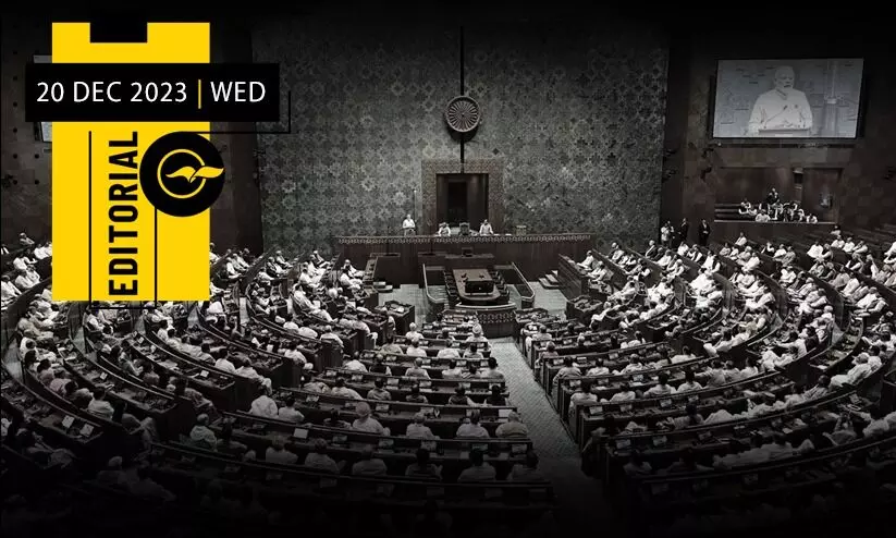 text_fieldsപതിനേഴാം ലോക്സഭയുടെ ശൈത്യകാല സമ്മേളനം സമാപിക്കാൻ മൂന്നുദിവസങ്ങൾ മാത്രം ശേഷിക്കെ മൂന്ന് ഘട്ടങ്ങളിലായി 141 എം.പിമാർ സസ്പെൻഡ് ചെയ്യപ്പെട്ടത് പാർലമെന്റിന്റെ ചരിത്രത്തിലെ സർവകാല റെക്കോഡാണ്. സഭാധ്യക്ഷന്മാർ ആവർത്തിച്ചാവശ്യപ്പെട്ടിട്ടും നടപടികൾ നിരന്തരം തടസ്സപ്പെടുത്തി എന്നാരോപിച്ചാണ് ഇത്രയും പ്രതിപക്ഷ എം.പിമാരെ പുറത്താക്കിയിരിക്കുന്നത്. പുറത്താക്കപ്പെട്ടവരിൽ ഭൂരിപക്ഷത്തിനും ഇനി നടപ്പ് സമ്മേളനത്തിൽ സംബന്ധിക്കാനാവില്ല. അവകാശ സമിതിയുടെ പരിഗണനക്കു വിട്ട ചിലർക്കാകട്ടെ, തങ്ങളെക്കുറിച്ച തീർപ്പറിയാൻ മൂന്നുമാസമെങ്കിലും കാത്തിരിക്കേണ്ടിവരും. പാർലമെന്റ് സമ്മേളിക്കേ ഡിസംബർ 13ന് അവിചാരിതമായി സന്ദർശക ഗാലറിയിൽനിന്ന് ലോക്സഭ ഡെസ്കുകളിലേക്ക് ചാടിവീണ രണ്ടുപേർ മഞ്ഞ പുകബോംബ് പൊട്ടിക്കുകകൂടി ചെയ്തതോടെ അങ്കലാപ്പിലായത് സഭാധ്യക്ഷനും അംഗങ്ങളും മാത്രമല്ല, സുരക്ഷ ഭടന്മാർകൂടിയായിരുന്നു. ആക്രമികളെ പണിപ്പെട്ട് കീഴടക്കിയെങ്കിലും രാജ്യത്തെ നാണംകെടുത്തിയ ഈ ഭീകരസംഭവത്തെക്കുറിച്ച് ആഭ്യന്തര മന്ത്രി അമിത് ഷാ സഭയിൽ പ്രസ്താവന നടത്തണമെന്നാവശ്യപ്പെട്ടാണ് പ്രതിപക്ഷാംഗങ്ങൾ നടപടികൾ തടസ്സപ്പെടുത്തിയത്. ഈ ആവശ്യം അംഗീകരിക്കാതെ സഭാധ്യക്ഷന്മാരുടെ പ്രസ്താവനകൾകൊണ്ട് തൃപ്തിപ്പെടണമെന്നാണ് ഭരണപക്ഷത്തിന്റെ ശാഠ്യം.