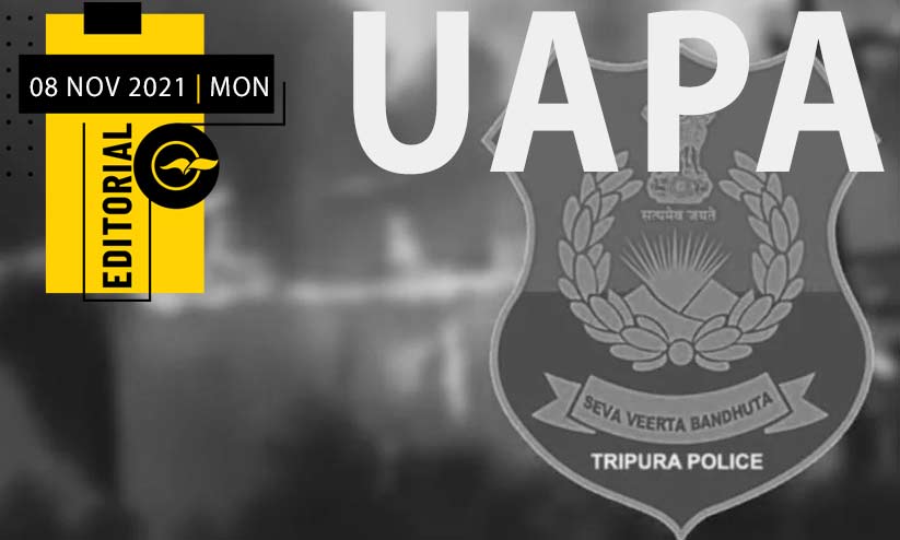 ത്രിപുരയിലെ ബിപ്ലബ്ദേബ് സർക്കാർ നിയമ ദുരുപയോഗത്തിൽ പുതിയ റെക്കോഡ് സൃഷ്ടിച്ചിരിക്കുന്നു. ഒക്ടോബർ 21 മുതൽ നടന്ന വർഗീയ അതിക്രമങ്ങളെപ്പറ്റി വസ്തുതാന്വേഷണം നടത്തി റിപ്പോർട്ട് പുറത്തുവിട്ട അഭിഭാഷകർക്കെതിരെ യു.എ.പി.എ ചുമത്തി കേസെടുത്തത് സൗകര്യപ്രദമായ അജ്ഞതയുടെയോ നീതിന്യായത്തോടും നിയമത്തോടുമുള്ള ധിക്കാരത്തിെൻറയോ ഫലമാണെന്നേ പറയാനാവൂ.