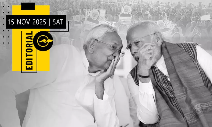 text_fieldsബിഹാറിൽ എക്സിറ്റ് പോൾ പ്രവചനങ്ങളെ കവച്ചുവെക്കുന്നതാണ് എൻ.ഡി.എയുടെ വിജയം; വർധിത ഭൂരിപക്ഷത്തോടെ നിതീഷ് കുമാർ ഒരിക്കൽകൂടി മുഖ്യമന്ത്രിപദത്തിൽ വരുമ്പോൾ അത് എല്ലാ അർഥത്തിലും പുതിയൊരു ചരിത്രത്തിന്റെ കൂടി തുടക്കമാകും. ഡസനിലധികം ഏജൻസികൾ നടത്തിയ തെരഞ്ഞെടുപ്പാനന്തര സർവേകളിലെല്ലാം എൻ.ഡി.എക്ക് ഭരണത്തുടർച്ച പ്രവചിച്ചിരുന്നു. എന്നാൽ, മുന്നണിക്ക് പരമാവധി 165 സീറ്റേ പ്രതീക്ഷിച്ചിരുന്നുള്ളൂ. അതിൽതന്നെ നിതീഷിന്റെ ജെ.ഡി.യുവിനെ അരികിലാക്കി ബി.ജെ.പി മുന്നണിയിലും നിയമസഭയിലും അപ്രമാദിത്വം സ്ഥാപിക്കുമെന്നും നിരീക്ഷിക്കപ്പെട്ടിരുന്നു. തെരഞ്ഞെടുപ്പ് പ്രചാരണഘട്ടങ്ങളിലെ നിതീഷിന്റെ പ്രകടനവും അത്തരമൊരു വിലയിരുത്തലിന് കാരണമായി.