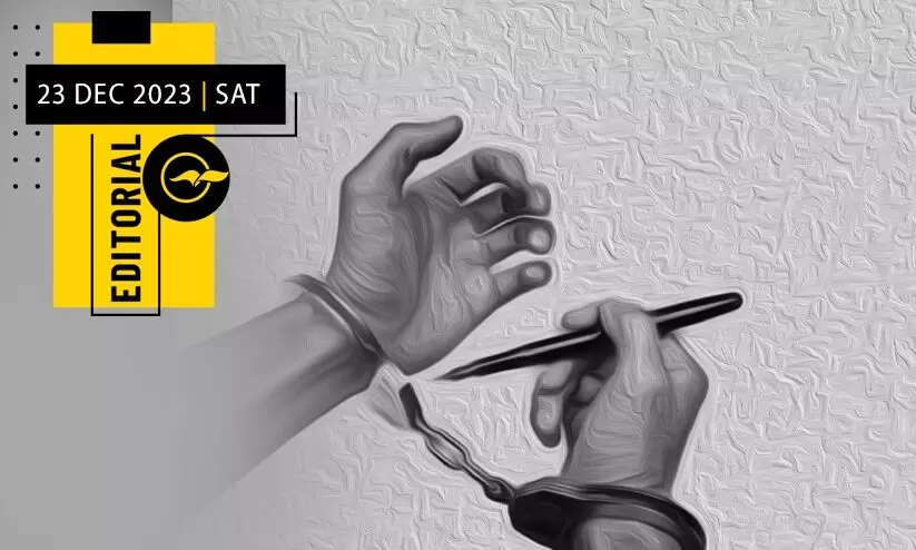 text_fieldsജനാധിപത്യത്തിന്റെ നാലാം തൂൺ എന്നു വിശേഷിപ്പിക്കാറുള്ള മാധ്യമങ്ങൾക്ക് ജനാധിപത്യത്തിന്റെതന്നെ പഴുതുകൾ ഉപയോഗപ്പെടുത്തി കൈവിലങ്ങണിയിക്കാനുള്ള നീക്കങ്ങൾ തുടരുകയാണ് ഭരണകൂടം. പുക ബോംബ് മുതൽ കൂട്ട സസ്പെൻഷൻ വരെയുള്ള ഒരുപിടി നാടകീയ സംഭവങ്ങൾക്ക് വേദിയായ പാർലമെന്റിന്റെ ശീതകാല സമ്മേളനം കേട്ടുകേൾവിയില്ലാത്തവിധം മുന്നറിയിപ്പില്ലാതെ സഭാനടപടികൾ ചുരുക്കി കഴിഞ്ഞദിവസം പിരിയുന്നതിനിടെ പുതിയൊരു ഡ്രക്കോണിയൻ നിയമം ചുട്ടെടുക്കാൻ ഭരണപക്ഷം മറന്നില്ല. ആഗസ്റ്റിൽ രാജ്യസഭ പാസാക്കിയ പത്ര, ആനുകാലിക രജിസ്ട്രേഷൻ ബിൽ ശൂന്യമായ പ്രതിപക്ഷത്തെ സാക്ഷിയാക്കി വ്യാഴാഴ്ച ലോക്സഭയിലും അംഗീകരിക്കപ്പെട്ടതോടെ ഫാഷിസ്റ്റ് വാഴ്ചയിൽ എരിഞ്ഞില്ലാതായിക്കൊണ്ടിരിക്കുന്ന രാജ്യത്തെ മാധ്യമമേഖലക്കുമേൽ പുതിയൊരു കുരുക്കുകൂടി വരുകയാണ്. പത്രമാധ്യമങ്ങളുടെയും ആനുകാലികങ്ങളുടെയും രജിസ്ട്രേഷൻ സംവിധാനം സുഗമമാക്കാനാണ് ഇത്തരമൊരു ബിൽ എന്നാണ് കേന്ദ്ര സർക്കാർ വക്താക്കളുടെയും മടിത്തട്ട് മാധ്യമങ്ങളുടെയും ന്യായം; 156 വർഷം മുമ്പ് ബ്രിട്ടീഷുകാർ കൊണ്ടുവന്ന പ്രസ്, ബുക് രജിസ്ട്രേഷൻ ആക്ടിനു പകരമായുള്ള നിയമമെന്ന നിലയിൽ കേന്ദ്രസർക്കാറിന്റെ ‘അപകോളനീകരണ-ഭാരതവത്കൃത’ പദ്ധതിയുടെ ഭാഗമായി ബില്ലിനെ എണ്ണുന്നവരുമുണ്ട്. എന്നാൽ, ലക്ഷണമൊത്തൊരു പത്രമാരണ നിയമത്തിനാണ് മോദി ഭരണകൂടം രൂപം നൽകിയിരിക്കുന്നതെന്ന് ബില്ലിലൂടെ വെറുതെയൊന്ന് കണ്ണോടിച്ചാൽ ആർക്കും മനസ്സിലാകും.